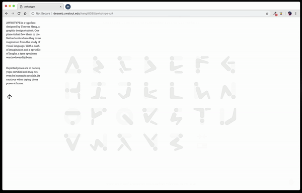 In the final steps of Awkotype, I wanted to produce a site for people to experience this colorful, fun, symbol-inspired language.